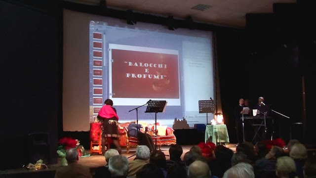 Uno spettacolo improvvisato per simboleggiare l'arrivo del Natale : aspettando le crispelle. Chi non è reggino di Calabria si domanderà cosa si stesse aspettando, la risposta viene chiarita dalle immagini, ma, per ampliazione, riferisco che tale leccornie sono fatte con della comune pastella con aggiunta di lievito di birra e, dopo la normale lievitazione,si farciscono le polpettine con acciuga o pomodori secchi o baccalà, si buttano in una padella con olio bollente...friggono e, quando galleggiano, si tirano in una pietanza. Si possono anche friggere senza nulla dentro e, una volta improntate, si rotolano nello zucchero e nel miele. Or quindi, aspettando l'arrivo, la platea, di tale libaggione, lo spettacolo comincia con un video adeguato "alle bisogna" di Salvatore Marrari e, per facilitare l'introduzione dello zampognaro,esso viene invitato al suono da una poesia recitata da Vittorio Calabrò. A seguire le poesie recitate da Marina Amedeo e Nanà Lo Giudice, poi il canto di Franco La Mendola accompagnato da Aldo festini(chitarra), Salvatore Marrari(mandolino) e Franco Sinicropi(tastiera). Ancora un canto calabrese di Vittorio calabrò e due canzoni napoletane fatte con mandolino e chitarra da, rispettivamente, Salvatore Marrari e Aldo Festini. Ma le crispelle sono già arrivate e Vittorio Calabrò canta un Sirtakì in lingua grecanica. Mentre la platea si prodica in assaggi, Franco Sinicropi e figlia intrattengono soci ed ospiti con tastiera e canzoni a tutto spiano.