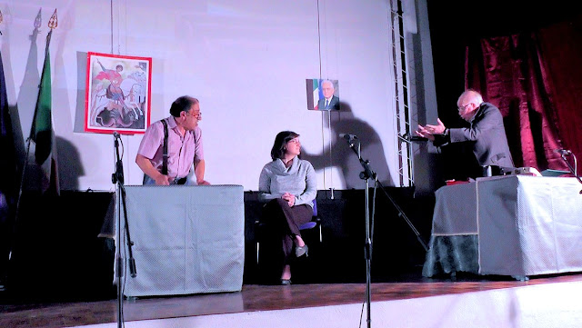 L'Accademia Del Tempo Libero Di Reggio Calabria ha invitato, presso Auditorium "Cipresseto Zanotti Bianco" per una esibizione, la compagnia di teatro popolare "CONCA D'ORO" di Arasì (RC) nella commedia comico-satirica IL GIGANTE NANO di Pasquale Borruto e Arturo Cafarelli per la regia di Enzo Schiavone. I personaggi e gli attori : Franco Curatola (assessore), Cinzia Merenda (Consigliera), Nicola Merenda sr (Segretario), Pino Cambera (on. Deputato), Arturo Cafarelli (Presid. Ass. Regina Giulia), Pietro Quartuccio (Prete), Teresa Merenda (Popolana), Cetty Polimeni (Popolana), Maria Condina (Giornalista), Demetrio Marra (Pres. club Pipi Chini), Nicola Marra (Mastro gigantaro), Franco D'Errigo (Usciere), Nicola Polimeni (Gigante), Nicola Merenda jr (Gigante nano), Carmelo Merenda (San Giorgio), Demetrio Marra (Cameriere), Enzo Schiavone (Sindaco). I musicisti : Bruno Caridi e Giuseppe Caridi. Alla consolle Domenico Curatola. Riprese, montaggi e computerizzazioni di Salvatore Marrari. E' stata una magnifica serata di significati sociali e risate, grazie agli autori e grazie alle inventive e, spesso, estemporaneità degli attori...tutti bravi a cogliere il consenso di un folto pubblico attento e plaudente. Non mancherà occasione, credo, che la presidente Silvana Velonà, a nome dell'Accademia tutta, riponga la fiducia e un nuovo invito a questa spettabile conpagnia teatrale, LA CONCA D'ORO, per una eventuale nuova commedia onde allietare ancora i soci di questo bel sodalizio.