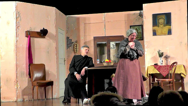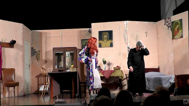 Una bella serata trascorsa in allegria con i bravi attori della compagnia teatrale "La Bottega Del Sorriso" di Cittanova (RC). L'auditorium "Umberto Zanotti Bianco" pieno in ogni ordine di posto; la gente, soci e ospiti, ha applaudito godendo di un dialetto che onora la terra da cui proviene e che si affaccia in un territorio a metà strada tra il Tirreno e lo Jonio, passando per lo Zomaro. Dunque, la gloriosa Calabria è stata ben rappresentata con una commedia brillante, meglio definita farsa, una di quelle farse in totale similitudine a quelle recitate dal grande Angelo Musco nel contesto siciliano. Una perpetua sapiente e anche burlona che cerca di riparare i guai che opprimono la casa del suo nervosissimo parroco, un Don Abbondio che bene si difende, al contrario del manzoniano personaggio, grida, perde la pazienza e scalcia. Un contorno di personaggi assortiti dal chierichetto ladruncolo che frega l'obolo, alla libertina impicciona, alle sognatrici innamorate, al cascamorto biondo come non mai, al povero sacrestano che, senza saper nulla, viene coinvolto in alterne vicende che sono parte integrante dell'ottima commedia. Un vero assortimento del "sorriso" che ha creato ilarità ed infiniti apprezzamenti. Bravi...e qui mi corre l'obbligo di menzionarli uno per uno cominciando dalle signore e poi i maschietti : Bernardette Rizzo (Teresina), Tina Muratori (Nunziatina), Federica Cangemi (Anna), Roberta Romeo (Lucia), Rosa Ligato (Donna Nina), Assunta Spirlì (perpetua), Eduardo Proto (chierichetto), Cristian Lauro (Michelino), Girolamo Russo (sagrestano), Francesco Rizzo (parroco Don Raffaeli e regista).
